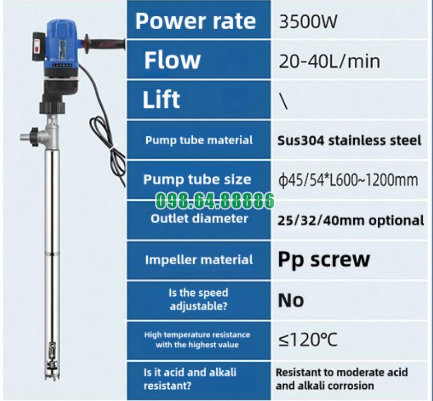 Máy bơm điện cho thùng phuy JDT-3500W-LGG120