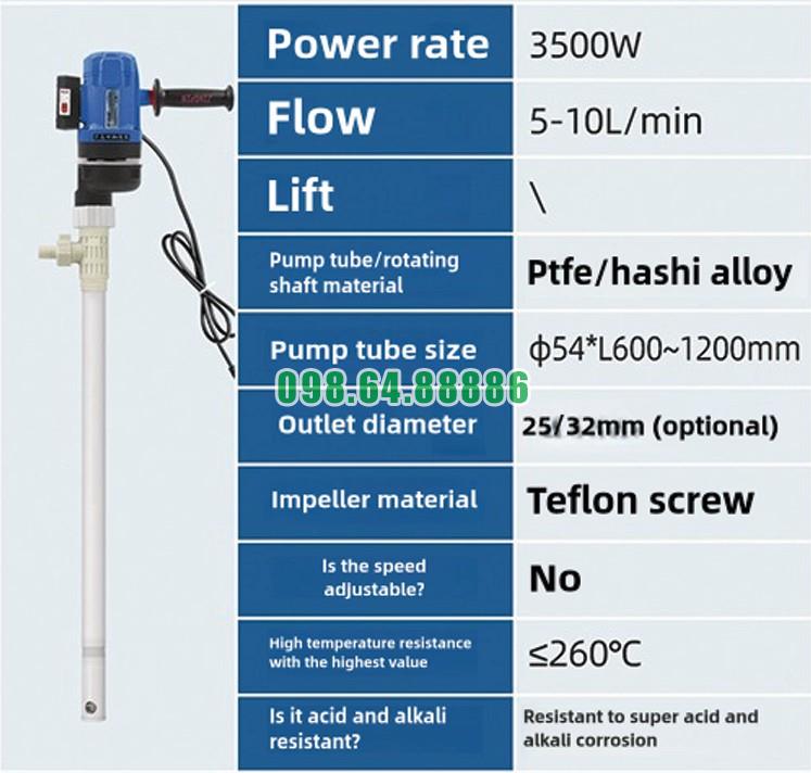 Máy bơm trục vít cầm tay chịu axit mạnh và kiềm JDT-3500W-PTGELG giúp: