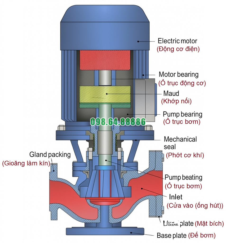 Hằng năm: Kiểm tra toàn bộ cánh bơm, vòng bi và gioăng, thay mới nếu mòn nhiều.