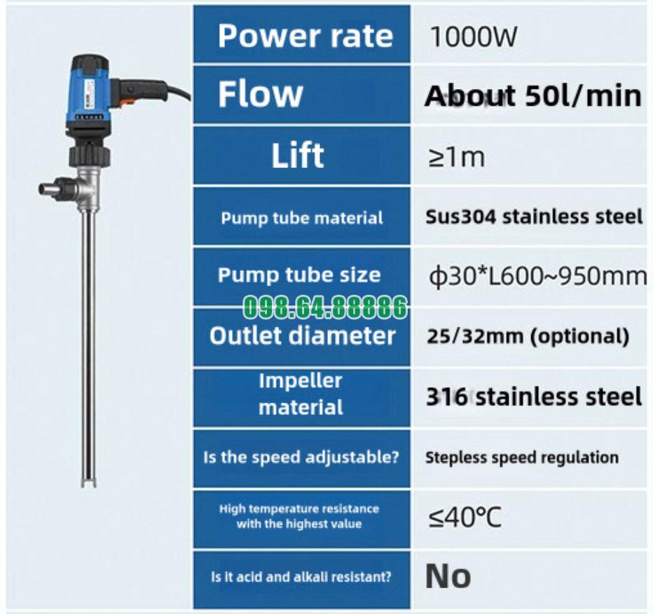 Bơm dầu dùng cho phuy nhỏ JDT-1000W-30SUS304