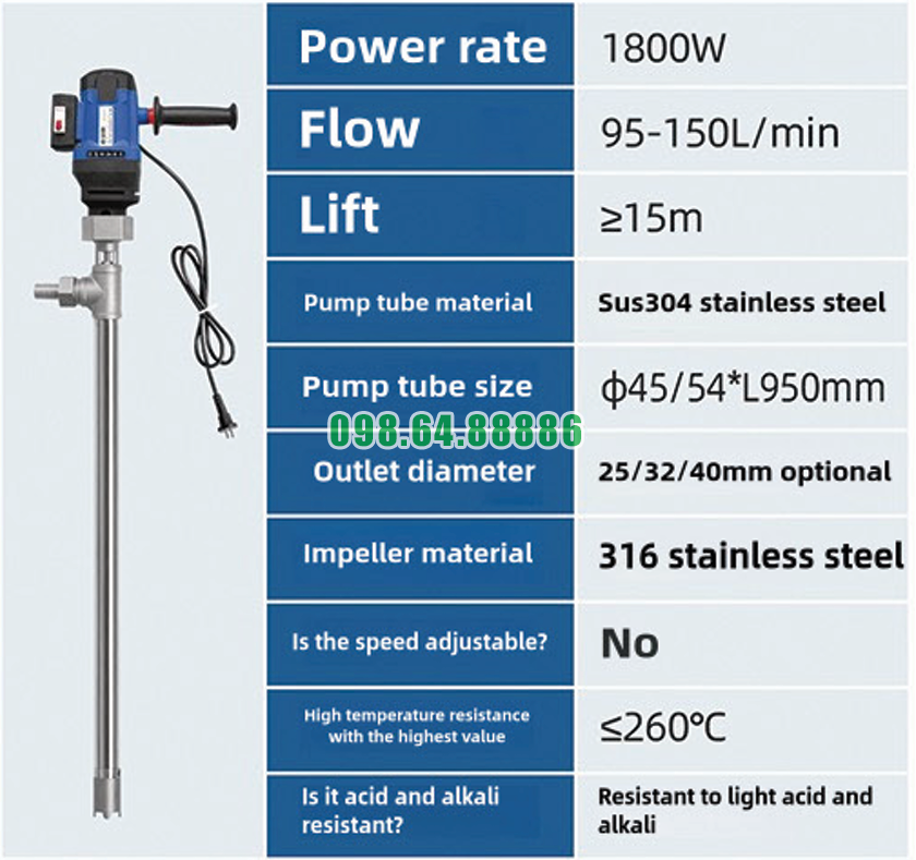 Bơm thùng phuy công nghiệp chịu nhiệt JDT-1800W-G260