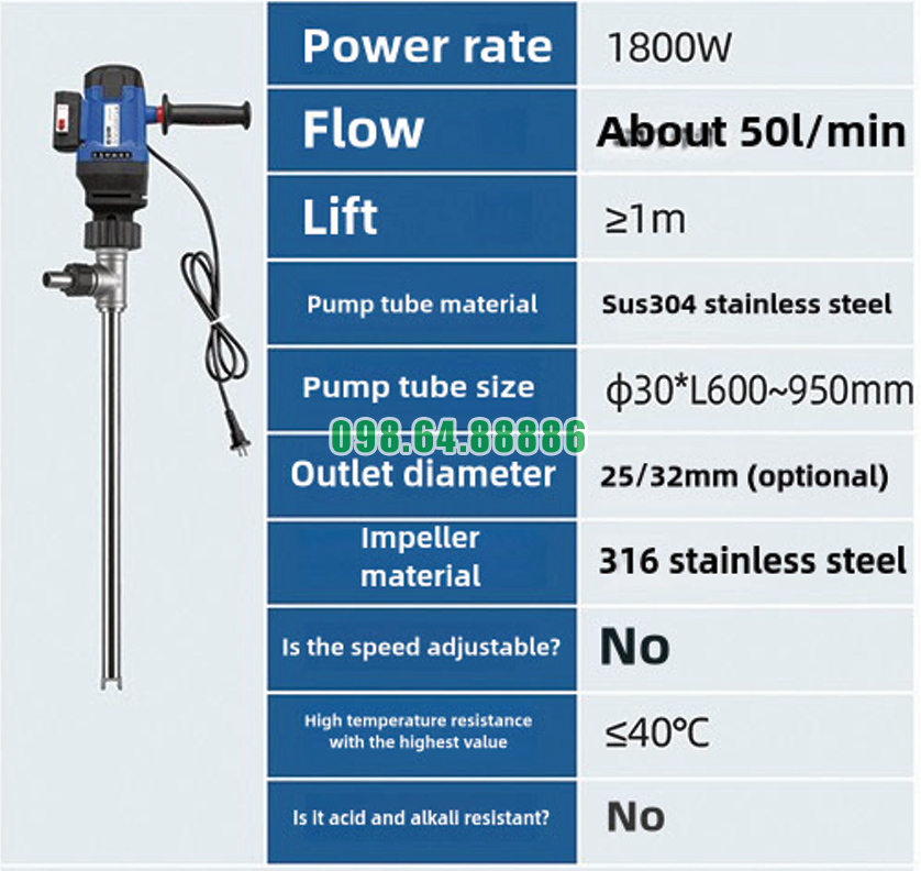 Sự vận hành êm ái của Máy bơm chất lỏng cắm điện JDT-1800W-30SUS304