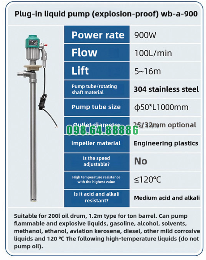 Máy bơm xăng dầu chống cháy nổ WB-A-900 loại cắm trực tiếp